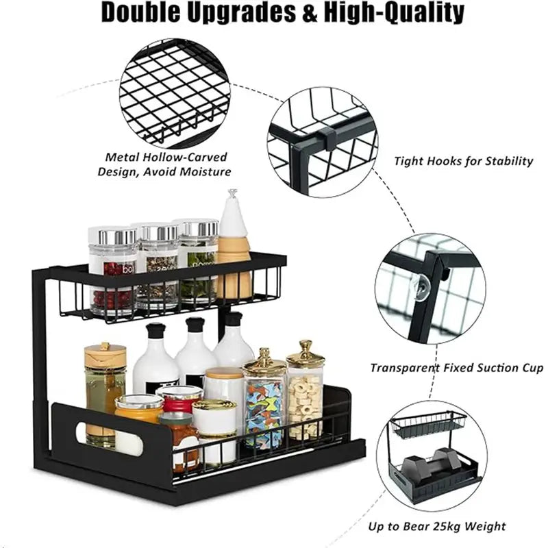 نظّم مطبخك بذكاء مع رف التخزين العملي المصمم خصيصًا ليستقر تحت الحوض او فوق المطبخ او داخل الحمام