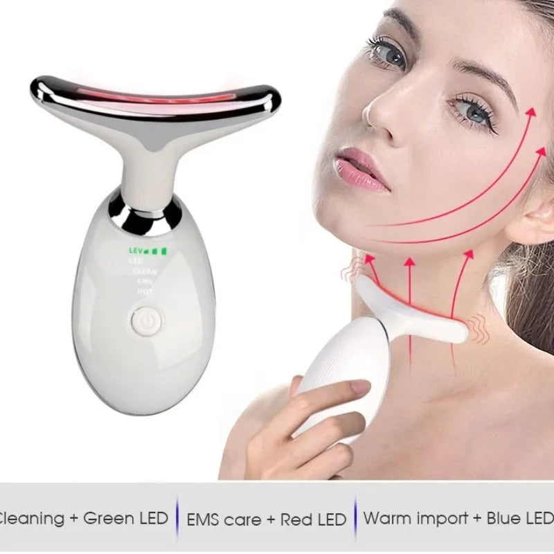 مضاد للتجاعيد للوجه والرقبة-هذا مدلك الوجه والرقبة متعدد الوظائف يحتوي على 3 أوضاع إضاءة ليد مختلفة ليست مناسبة فقط لتدليك الوجه والرقبة ولكن يمكن استخدامها أيضًا لتدليك الذراعين ، الكتفين وأجزاء أخرى ، شد الجلد المترهل واسترخاء العضلات